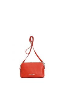 Camera bag aus gehämmertem leder mit doppelter reißverschlusstasche. tasche mit verstellbarem schultergurt.