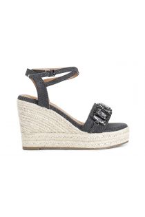 Canvas-sandalen mit applikationen am obermaterial. 10.5-cm-seilkeil und 3.5-cm-plattform. knöchelriemen. innensohle aus leder.