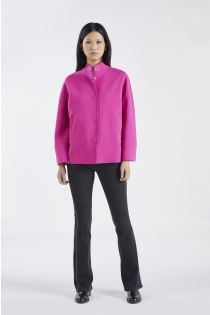 Cape aus dubliertem technischem Gewebe mit Innenseite in Kontrastfarbe und unversäumten Schnittkanten