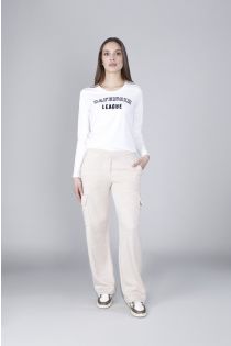 Warme Fleece-Cargohose mit Seitentaschen und Strassapplikationen. Komfort und lässiger Stil vereinen sich in diesem trendigen Modell in regulärer Passform. Das Model ist 172 cm groß und trägt Größe S.