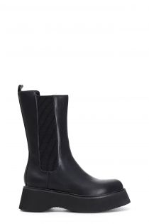 chelsea-boots aus lederimitat mit gummizug und blocksohle