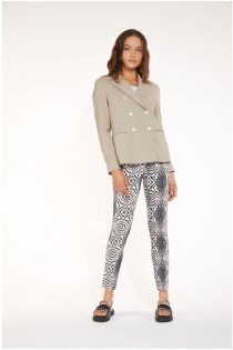 Chinohose aus gemustertem Superstretch-Viskosestoff. Modell, das die Körperlinien weich umspielt.