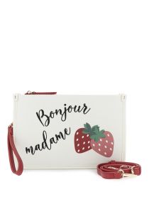 clutch aus canvas und nappa-leder mit print und stickerei white