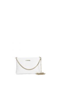 clutch aus gehämmertem leder mit doppeltem kettenschulterriemen white