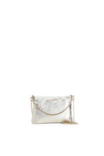 clutch aus laminiertem leder mit schultergurtkette light gold