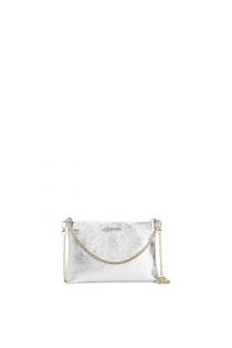 clutch aus laminiertem leder mit schultergurtkette silver