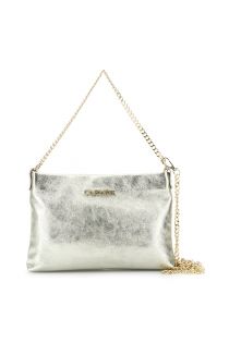 clutch aus metallic-leder, schulterriemen und henkel mit kette und karabinerhaken light gold