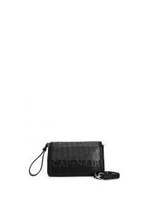 Clutch mit überschlag. cafènoir-logo aus zweifarbigen strasssteinen. die rückseite hat einen spiegeleffekt. tragegriff und schulterriemen.