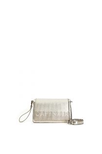Clutch mit überschlag. cafènoir-logo aus zweifarbigen strasssteinen. die rückseite hat einen spiegeleffekt. tragegriff und schulterriemen.
