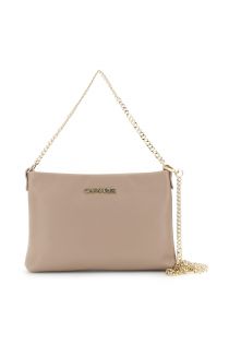 clutch-tasche aus leder im dollar-stil, schulterriemen und henkel mit kette und karabinerhaken nude