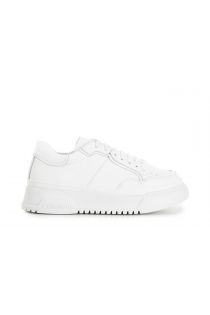 Colour block leder-sneaker mit heller schalensohle verziert mit einem logo an der unteren ferse.