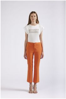 Cropped schlaghose aus superstretch-stoff mit slub-optik. reißverschluss und knopfverschluss.