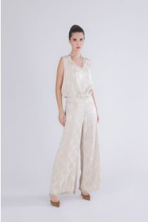 Palazzo-hose aus damast-viskose-satin mit glänzendem finish. fließend und elegant mit offenem saum. ideal für raffinierte looks formelle anlässe oder schicke abendgarderobe. das model ist 175 cm groß und trägt größe s. passform: normal.