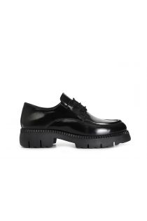 Schnür-derby aus leder für damen. futter und innensohle sind aus leder. 25 mm hohes plateau. 40 mm absatz.