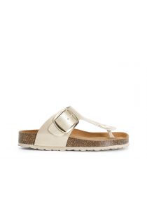 Damen-flip-flop-slipper mit schnalle. bequemes 2.5 cm hohes fußbett aus leder.