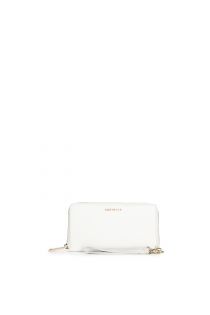 damen-geldbörse aus leder mit reißverschluss und abnehmbarem griff white
