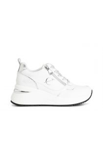 Damen-laufschuhe aus beschichtetem leder mit seitlichem zierreißverschluss. internes fußbett.