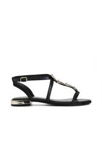 Damen-sandalen leder. accessoire strass-dreiecke. knöchelriemchen mit schnalle.