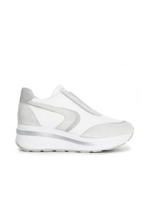 Slipper-sneaker leder mit glitzereinsätzen. zweifarbige 40-mm-keilsohle mit geprägtem logo.