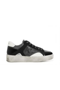 Damen-sneaker aus leder und wildleder mit einsätzen in lack- und metallic-optik. seitlich geprägtes logo mit cafènoir-monophragma. schuh mit abgerundeter form. spitzenverschluss. internes fußbett. 30-mm-kassettensohle.