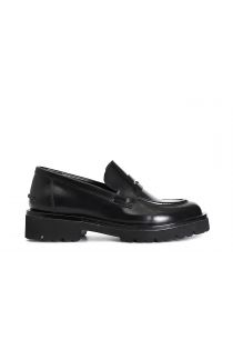 Damen-mokassin aus leder. der absatz ist 35 mm hoch. das futter und die innensohle sind aus leder.