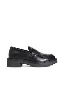 damen-mokassin aus leder mit fransen black