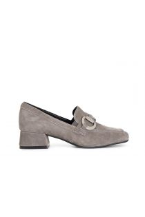 Damen-mokassin aus wildleder mit horsebit. die innensohle ist aus leder. 40 mm dicker absatz.