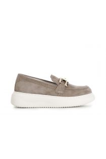 damen-mokassin aus wildleder mit horsebit und cupsohle taupe