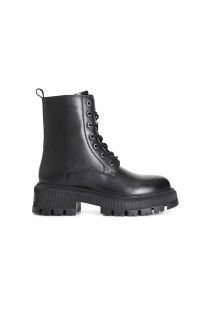 Damen-schnürstiefelette aus leder. 55 mm hoher absatz. die innensohle ist aus leder.