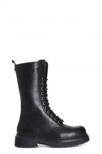 Ikonisches produkt immer ein unbestrittener bestseller. dieser hohe schnürstiefel aus lederimitat. in seiner einfachheit ist es der schlüssel zur vervollständigung der unterschiedlichsten looks.