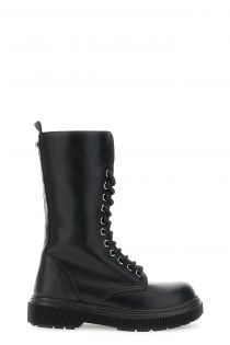 Kultige Schnürstiefeletten im Combat-Stil aus schwarzem Kunstleder. Textilfutter und robuste 4 cm Sohle. Vielseitige Bestseller mit markantem, urbanem Look.