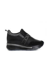 Damen-slipper aus leder mit glitzerdetails und einem hübschen band mit logo von cafènoir in strass. zweifarbige boxsohle mit geprägtem logo.