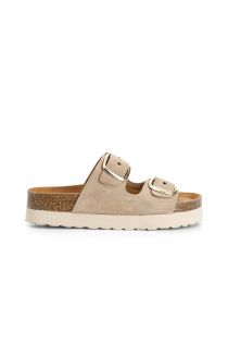 Damen-slipper aus leder mit doppelschnalle. bequemes 4 cm hohes fußbett aus leder.