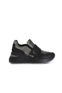 Damen-slipper aus nylon und leder mit klettverschluss. internes fußbett.