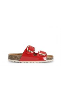 Damen-slipper mit doppelschnalle. bequemes 2.5 cm hohes fußbett aus leder.