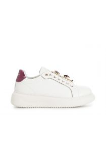 damen-sneaker aus leder mit abnehmbaren schmuckaccessoires white/bordeaux