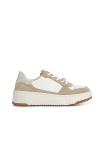 damen-sneaker aus leder und wildleder mit accessoire white/bege