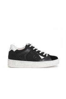 Damen-sneaker aus leder und wildleder mit einsätzen in lack- und metallic-optik. seitlich geprägtes logo mit cafènoir-monophragma. schuh mit abgerundeter form. spitzenverschluss. internes fußbett. 30-mm-kassettensohle.