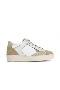 damen-sneaker aus leder und wildleder mit einsätzen in metallic-optik white camel
