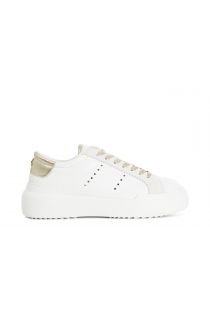 Damen-sneaker aus kunstleder. farbiger kragen und farbige schnürsenkel.