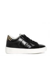 Damen-sneaker aus laminat mit ledereinsätzen glitzer und metallic-effekt. schuh der sich durch einen besonderen gepunkteten einsatz auf der rückseite des schuhs auszeichnet. schuh mit abgerundeter form. spitzenverschluss. internes fußbett. 30-mm-kassettensohle.