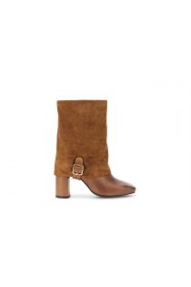 Stiefeletten aus nappa- und wildleder mit maxi-umschlag und schnalle. ikonisches modell mit leicht abgerundeter form für einen innovativen und raffinierten stil. 80 mm hoher absatz. die innensohle ist aus leder.
