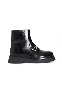 Damen-stiefelette aus naplak mit personalisiertem accessoire an der schlaufe. reißverschluss an der innenseite des schuhs. die innensohle ist aus leder.