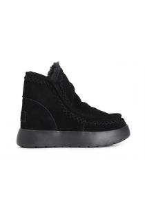 Damenstiefelette mit erhöhter sohle. obermaterial aus wildleder und futter aus kunstfell.