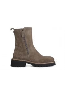 damen-stiefelette aus wildleder mit doppeltem reißverschluss taupe