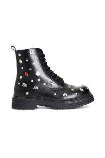 damen-stiefelette mit gemusterten nietenschnürung black
