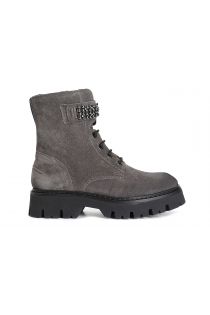 Schnürstiefelette aus wildleder mit schmuckaccessoire. reißverschluss innen. die innensohle ist aus leder. die tanksohle aus extraleichtem material strafft das modell und macht es hyperaktuell.