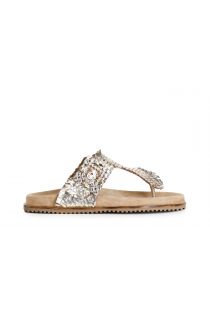 damen-zehenstegsandalen aus gewebtem leder light gold