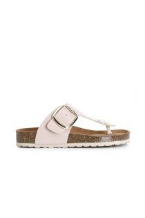 Damen zehenstegsandalen aus lackleder mit schnalle. bequemes fußbett.