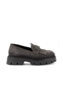 damenmokassin mit fransen und wildleder-accessoire asphalt